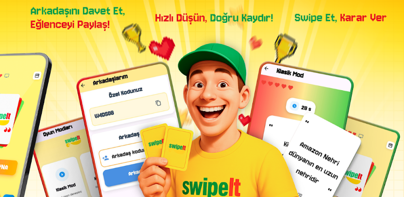 SwipeIt, testleri sadece bir değerlendirme aracı olmaktan çıkarıyor; oyuncunun bilgi, refleks ve motivasyonunu ön plana çıkaran interaktif bir deneyim haline getiriyor. Temmuz 2025’te App Store’da da yerini alacak bu uygulama ile dijital test deneyimine yeni bir bakış açısı getiriyoruz.
